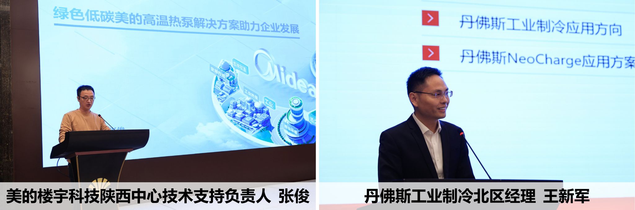 学术报告环节亮点纷呈,多位行业资深专家和学者带来专业分享。中国建筑西北设计研究院教授级高工周敏作《基于空调冷热源的区域能源系统规划一一以西安机场三期T5为例》报告;中联西北工程设计研究院有限公司教授级高工丁峰分享了《室内滑雪场暖通空调设计案例》;西安交通大学侯予教授围绕《透平制冷技术的研究进展及其应用》进行分享;西安建筑科技大学高然教授分享《低阻力低碳排的建筑流体输配理论及技术》;美的楼宇科技陕西中心技术支持负责人张俊作《绿色低碳美的高温热泵解决方案助力企业发展》报告,丹佛斯工业制冷高级销售经理王新军、山东百福特环境科技有限公司副总经理唐振兴、成都科斯特制冷技术有限公司总经理李军、西安交通大学刘国强副教授、浙江商业机械厂有限公司执行董事徐勇、南通博朗冷冻设备有限公司产品部经理许鹤等多名报告人在下午的会议上针对发展趋势、研究现状和技术分析几个方面进行了精彩的报告分享。