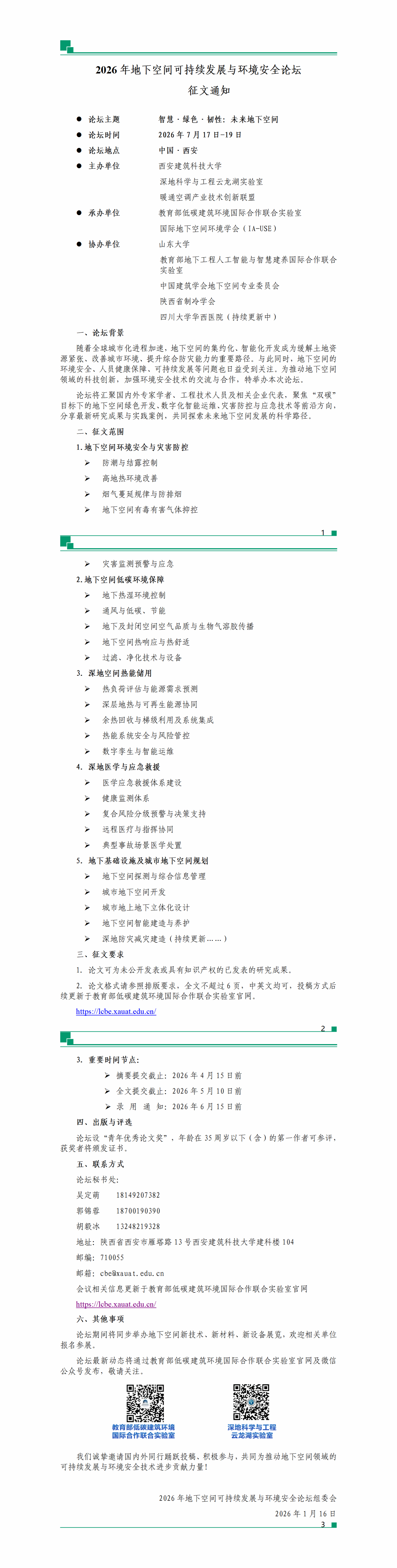 2026年地下空间可持续发展与环境安全论坛